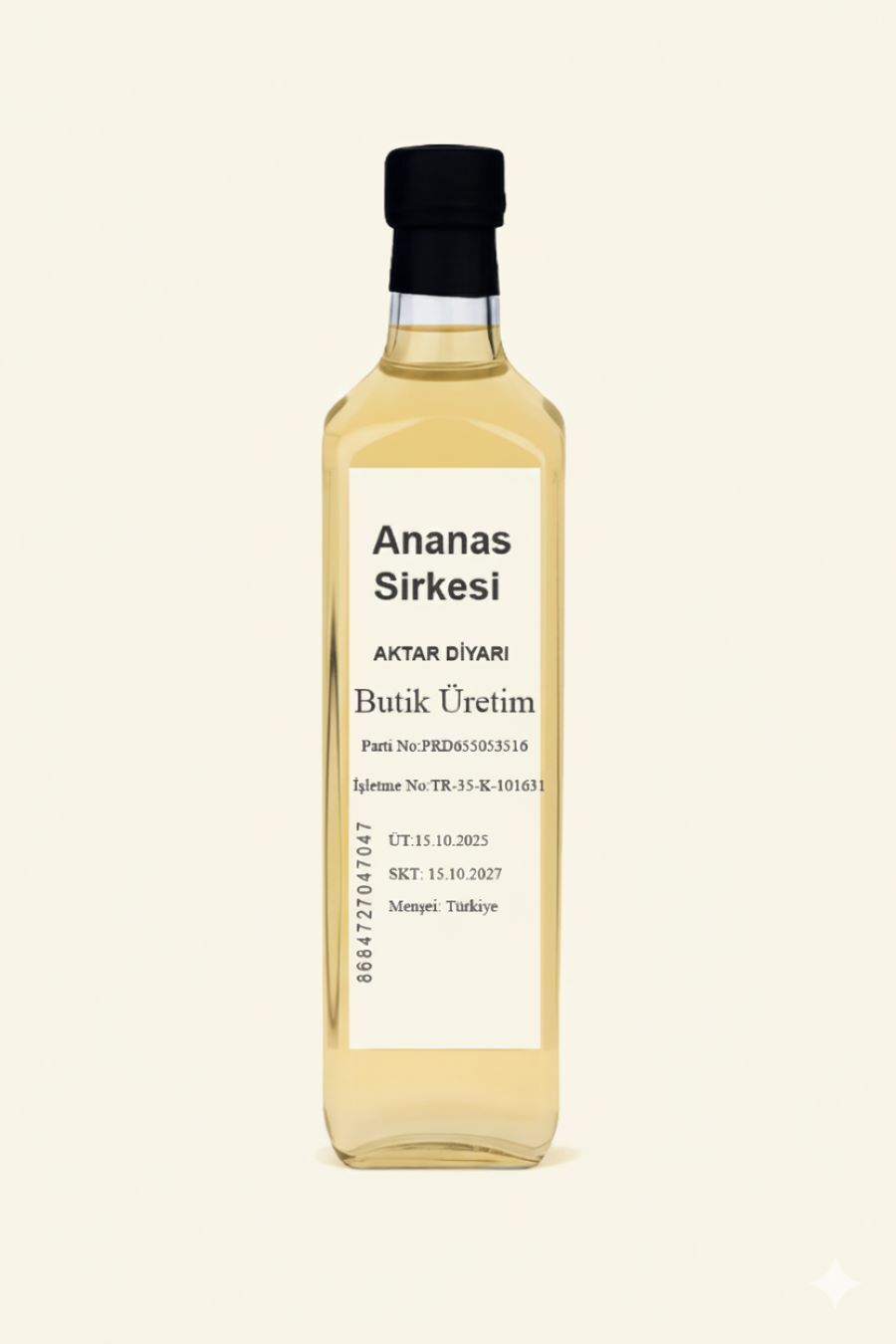 Aktar Diyarı Ananas Sirkesi ile mutfağınıza ferahlatıcı bir dokunuş katın. Muhtelif Gıda kategorimizin gözde ürünü olan Aktar Diyarı Ananas Sirkesi, özenle seçilmiş ananaslardan doğal fermantasyon yöntemiyle üretilir. Benzersiz tat profili ve hafif ekşiliği ile salatalarınıza, soslarınıza, marinasyonlarınıza ve hatta içeceklerinize lezzet katar. Aktar Diyarı kalitesiyle sunulan bu özel ananas sirkesi, mutfak maceralarınızda vazgeçilmez bir yardımcı olacak. Doğal içeriği ve zengin aromasıyla yemeklerinize fark katmak için Aktar Diyarı Ananas Sirkesi'ni hemen sepetinize ekleyin.