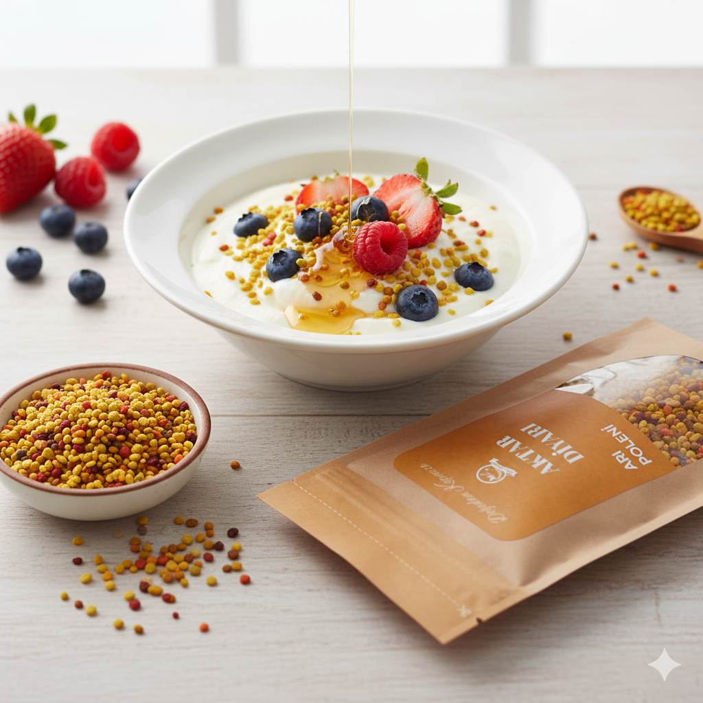 Aktar Diyarı Arı Poleni Arı poleni, karotenoidler, flavonoidler ve fitosteroller açısından zengindir. Bu bileşenlerin oranları arının poleni topladığı bitkisel kaynaklara ve büyüme şartlarına göre değişmekle birlikte, beta-karoten, beta-sitosterol, isohamnetin, kaempferol, likopen, quercetin ve rutin içeriğinin sabit olduğu saptanmıştır. Polen Polen, çiçeklerin erkek organ hücresidir. Arılar bir çiçeğe kondukları zaman çiçek üzerindeki polen tozları üzerine yapışırlar, arılar üzerlerine yapışan bu toz zerreciklerini salgıladıkları sıvı yardımıyla bir birine yapıştırarak ayaklarına tuttururlar ve kovana taşırlar. Arı ilk konduğu çiçekten başka bir çiçeğe geçtiği zaman, üzerine yapışan polen tozları diğer çiçeğin dişi organına temas ettiğinde çiçekler arasında çiftleşme gerçekleşmiş olur.Yapılan araştırmalar arının sabah ne tür çiçeğe konarsa, akşama kadar sadece o tür çiçeğe konmaya devam ettiğini göstermektedir. Polende insan vücuduna yararlı tam 22 çeşit aminoasit, 27 çeşit madensel tuz, doğal hormon, enzim, pigment, karbonhidrat ve ferment bulunmaktadır. Ayrıca polende bulunan elementlerden bazıları da demir, bakır, kalsiyum, sodyum, magnezyum, silisyumdur. Alüminyum, nikel, titanyum ve çinko da polende bulunan iz elementlerdir. Polende bulunan vitaminler de, A, B1, B2, B3, B4, B5, B6, B7, B8, B9, B12, C, D, E, H ve P vitaminleridir. Bal & Pekmez & Macun Son yıllarda değişen beslenme alışkanlıkları ile yüksek kalorili ve mikro besinler açısından fakir gıdalar ile beslenilmektedir. Bu durum insanların sağlıklı gelişimleri için mutlak almaları gerekli vitamin ve minerallerin eksik alımına yol açmaktadır. Şuruplar çoklu vitamin ve mineral içeren takviye edici gıdadır. Günlük vitamin ve mineral ihtiyacımızın karşılanmasına yardımcıdır. Muhafaza Şekli Serin ve kuru yerde saklayınız. Marka Hakkında Butik üretim yaptırdığımız bitki ,bitki türevleri ve farklı formdaki bitkiler son mahsül ürünüdür. Asla seri üretim yapmadan en fazla 3 aylık ,bazen günlük siparişe göre paketleme planları yapılarak , uzman kontrolünde tedarik edilen ürünlerdir. Bitki ve bitki formları (dökme bitki ,su,,yağ,macun,karışımlarda ) seri üretimine kesinlikle karşıyız .rafta beklemeye etken maddenlerin kaybolmasından bitkinin özelliğini yitirmesinden dolayı talep doğrultusunda taze,az ve butik üretim ve paketleme yapmaktayız.Özellikle Bitki suları ve yağları kesinlikler butik üretim olmalı ve raflarda beklememelidir.