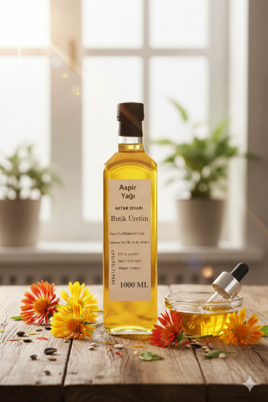 Aktar Diyarı'nın %100 saf aspir yağı ile mutfağınıza ve yaşamınıza doğallık katın. Bu özel bitkisel yağ, özenle seçilmiş aspir tohumlarından soğuk pres yöntemiyle elde edilerek besin değerini ve saflığını korur. Aktar Diyarı aspir yağı, hafif aroması ve yüksek dumanlanma noktası sayesinde kızartmalarda, sotelemede ve fırın yemeklerinde ideal bir tercihtir. Ayrıca salatalarınıza ferah bir lezzet katarken, kahvaltı sofralarınızı da zenginleştirebilirsiniz. Cilt bakımı rutininizde de Aktar Diyarı aspir yağının sunduğu yenileyici etkiyi keşfedin. Nemlendirici özelliği sayesinde cildinizin daha yumuşak ve pürüzsüz görünmesine yardımcı olur. Saç uçlarına uygulandığında ise kurumuş ve yıpranmış saçların onarılmasına destek olabilir. Aktar Diyarı, sizlere sunduğu her üründe olduğu gibi aspir yağı konusunda da yüksek kalite standartlarını benimser. Güvenilirliği ve doğallığı ön planda tutan Aktar Diyarı, bu bitkisel yağ ile sofralarınıza ve kişisel bakımınıza sağlıklı bir dokunuş getirmeyi amaçlar. Aktar Diyarı kalitesiyle, her damlasında doğanın iyiliğini hissedin. Bu değerli bitkisel yağ ile hem lezzetli yemekler hazırlayabilir hem de cildinize ve saçlarınıza hak ettiği özeni gösterebilirsiniz.