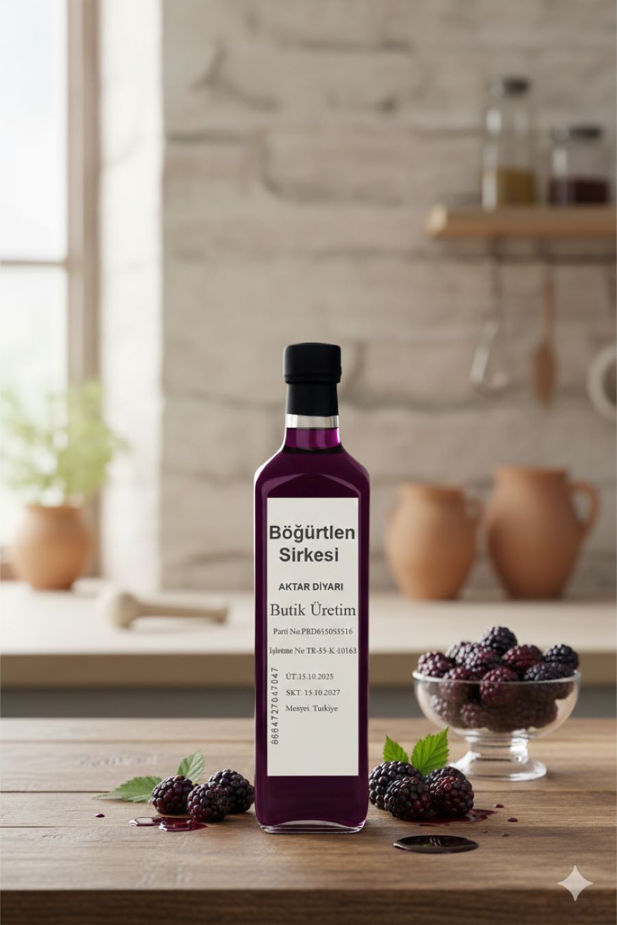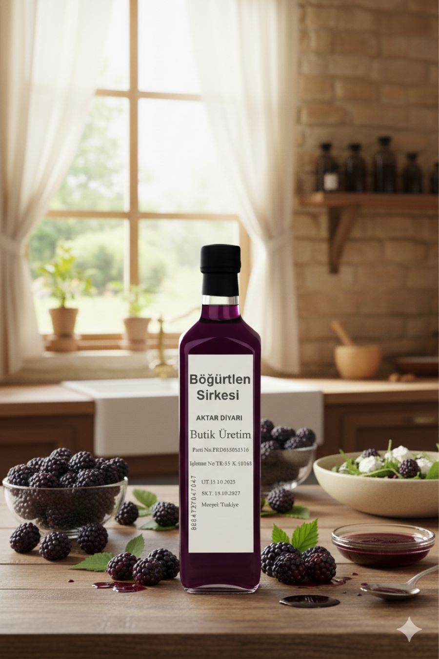 Aktar Diyarı Böğürtlen Sirkesi ile sofralarınıza lezzet ve sağlık katın. Muhtelif Gıda kategorisinde öne çıkan Aktar Diyarı markamızın özel ürünü olan böğürtlen sirkesi, özenle seçilmiş taze böğürtlenlerden doğal fermantasyon yöntemiyle üretilmiştir. Tatlı ve hafif ekşi lezzetiyle salatalarınıza, soslarınıza ve içeceklerinize eşsiz bir aroma katacak bu özel sirke, mutfakta vazgeçilmezlerinizden olacak. Aktar Diyarı kalitesiyle sunulan böğürtlen sirkesi, el değmeden paketlenerek sofralarınıza ulaşır. Doğal ve saf içeriğiyle öne çıkan bu ürün, Aktar Diyarı güvencesiyle mutfaklarınızda yerini almaya hazır. Sağlıklı yaşam tarzını benimseyenler ve doğal lezzet arayanlar için ideal bir seçimdir. Aktar Diyarı Böğürtlen Sirkesi ile damaklarda iz bırakan lezzetler yaratın.