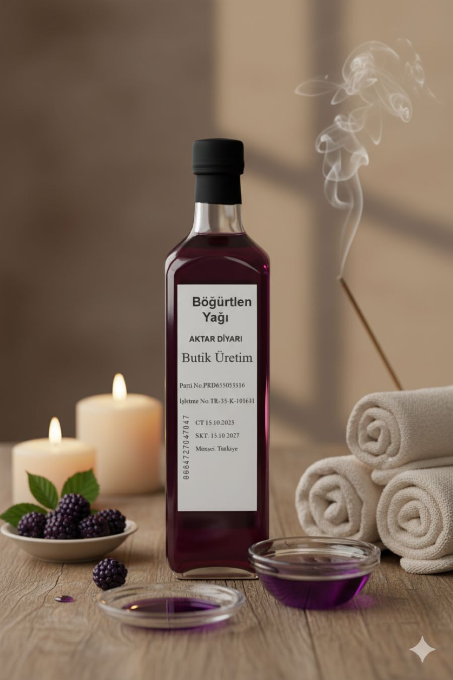 Aktar Diyarı Böğürtlen Yağı ile doğanın mucizevi dokunuşunu keşfedin. Saf ve doğal yollarla elde edilen Böğürtlen Yağı, cildiniz ve saçlarınız için eşsiz bir bakım sunar. Aktar Diyarı kalitesiyle sunulan bu özel yağ, içerdiği zengin besin öğeleriyle cildinizi nemlendirir, besler ve canlılık kazandırır. Saç tellerini güçlendirmeye yardımcı olurken aynı zamanda parlaklık ve yumuşaklık katar. Aktar Diyarı Böğürtlen Yağı, doğal güzelliğinizi ön plana çıkarmak için her zaman yanınızda. Cilt bakım rutininizin vazgeçilmez bir parçası olacak bu eşsiz ürün, etkili sonuçlarıyla fark yaratır. Aktar Diyarı güvencesiyle sunulan Böğürtlen Yağı, doğallığı ve saflığıyla öne çıkar. Cildinize ve saçlarınıza hak ettikleri özeni gösterin. Aktar Diyarı'nın eşsiz Böğürtlen Yağı ile farkı hissedin.