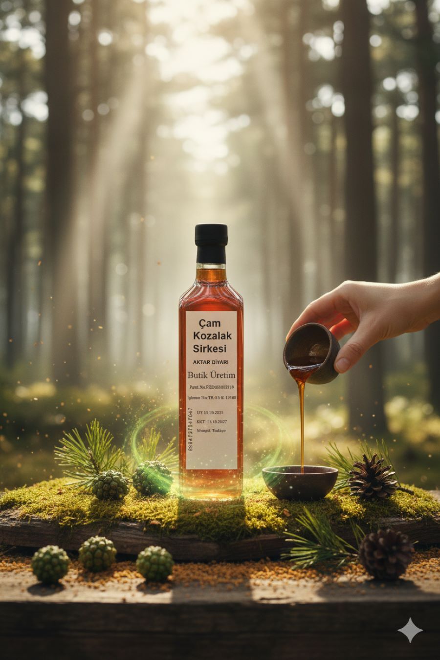 Aktar Diyarı'nın eşsiz Çam Kozalak Sirkesi ile mutfağınıza doğallık katın. Özenle toplanmış taze çam kozalaklarından fermente edilerek üretilen bu özel sirke, Aktar Diyarı kalitesiyle sofralarınıza geliyor. Muhtelif Gıda kategorimizin yıldız ürünlerinden biri olan Çam Kozalak Sirkesi, salatalarınızda, soslarınızda ve çeşitli yemeklerinizde benzersiz bir lezzet derinliği yaratır. Doğal fermantasyon süreciyle elde edilen bu sirke, hafif mayhoş ve taze aromasıyla damaklarda hoş bir tat bırakır. Aktar Diyarı'nın doğadan ilham alan ürün gamı içerisinde yer alan Çam Kozalak Sirkesi, sağlıklı yaşam tarzını benimseyenler için de harika bir alternatiftir. Hem lezzet hem de kalite arayanlar için Aktar Diyarı Çam Kozalak Sirkesi ideal bir tercihtir. Mutfaklarınızın vazgeçilmezi olacak bu özel lezzeti keşfetmek için hemen sepetinize ekleyin. Aktar Diyarı güvencesiyle sunulan Çam Kozalak Sirkesi, sofralarınıza değer katmak için hazır.