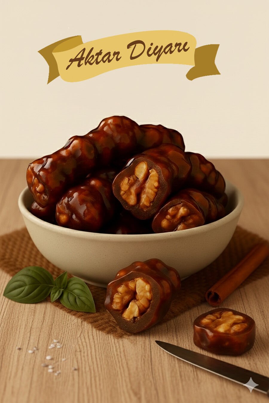 Aktar Diyarı Cevizli Sucuk : Doğanın En Lezzetli Hediyesi Aktar Diyarı'nın özenle hazırladığı Cevizli Sucuk, geleneksel lezzeti modern sunumuyla buluşturuyor. İncecik dilimlenmiş, besleyici cevizler ve en taze üzüm pekmeziyle hazırlanan bu eşsiz ikramlık, sofralarınıza tat katacak. Sağlıklı atıştırmalık arayanlar, özel günler için farklı lezzetler denemek isteyenler veya sevdiklerine doğal ve lezzetli bir hediye vermek isteyenler için Aktar Diyarı Cevizli Sucuk ideal bir seçimdir. Enerji deposu cevizleri ve doğal pekmezin eşsiz uyumuyla her lokmada damaklarda unutulmaz bir tat bırakır. Aktar Diyarı kalitesiyle sunulan bu Cevizli Sucuk, tazeliği ve doğallığı ile öne çıkıyor. Paketin açıldığı andan itibaren hissedilen cezbedici aroma ve lezzet, sizleri eski Anadolu lezzetlerine doğru bir yolculuğa çıkaracak. İkramlık kategorisinin vazgeçilmezi haline gelecek Aktar Diyarı Cevizli Sucuk, kahvaltı sofralarından çay saatlerine, misafir ağırlamalarından özel davetlere kadar her anınıza eşlik edebilir. Doğal, besleyici ve lezzetli bir seçenek arıyorsanız, Aktar Diyarı Cevizli Sucuğu hemen sepetinize ekleyin. Lezzetin ve kalitenin adresi Aktar Diyarı güvencesiyle.