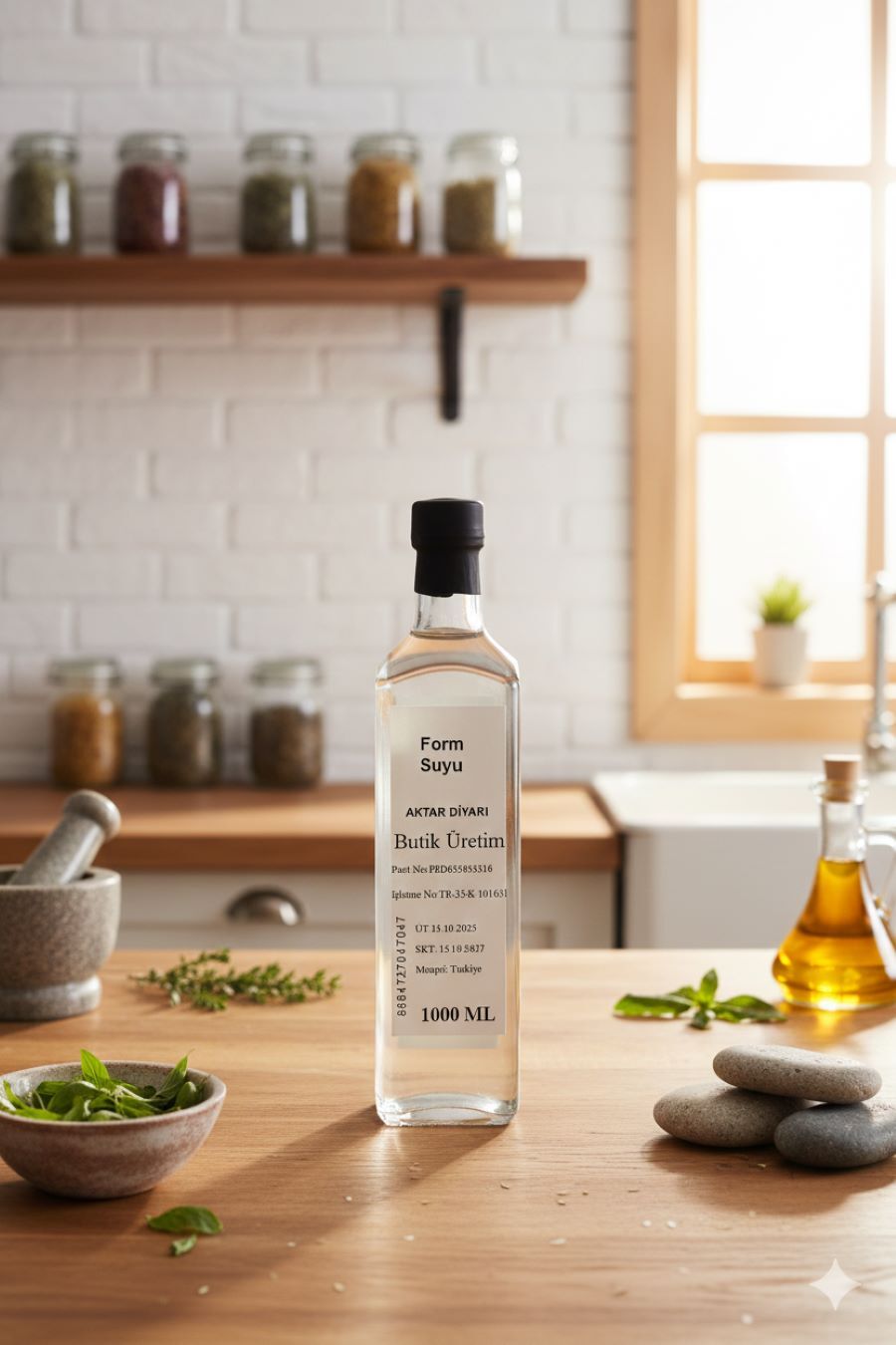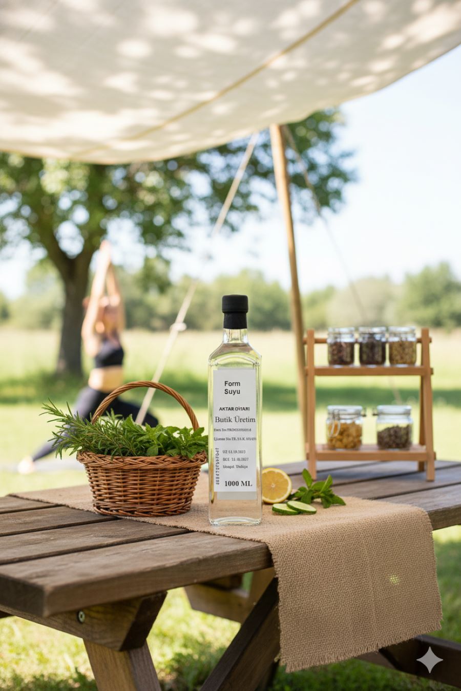 %20 yeşil çay, %10 bilye kekik, %10 çoban çökerten, %10 biberiye, %10 funda yaprağı, %10 mate yaprağı, %10 sinirli ot, %10 barut ağacı kabuğu, %10 sinameki.Su Buharı Distilasyonu yöntemi ile elde edilmiş, içme amaçlı form suyu.