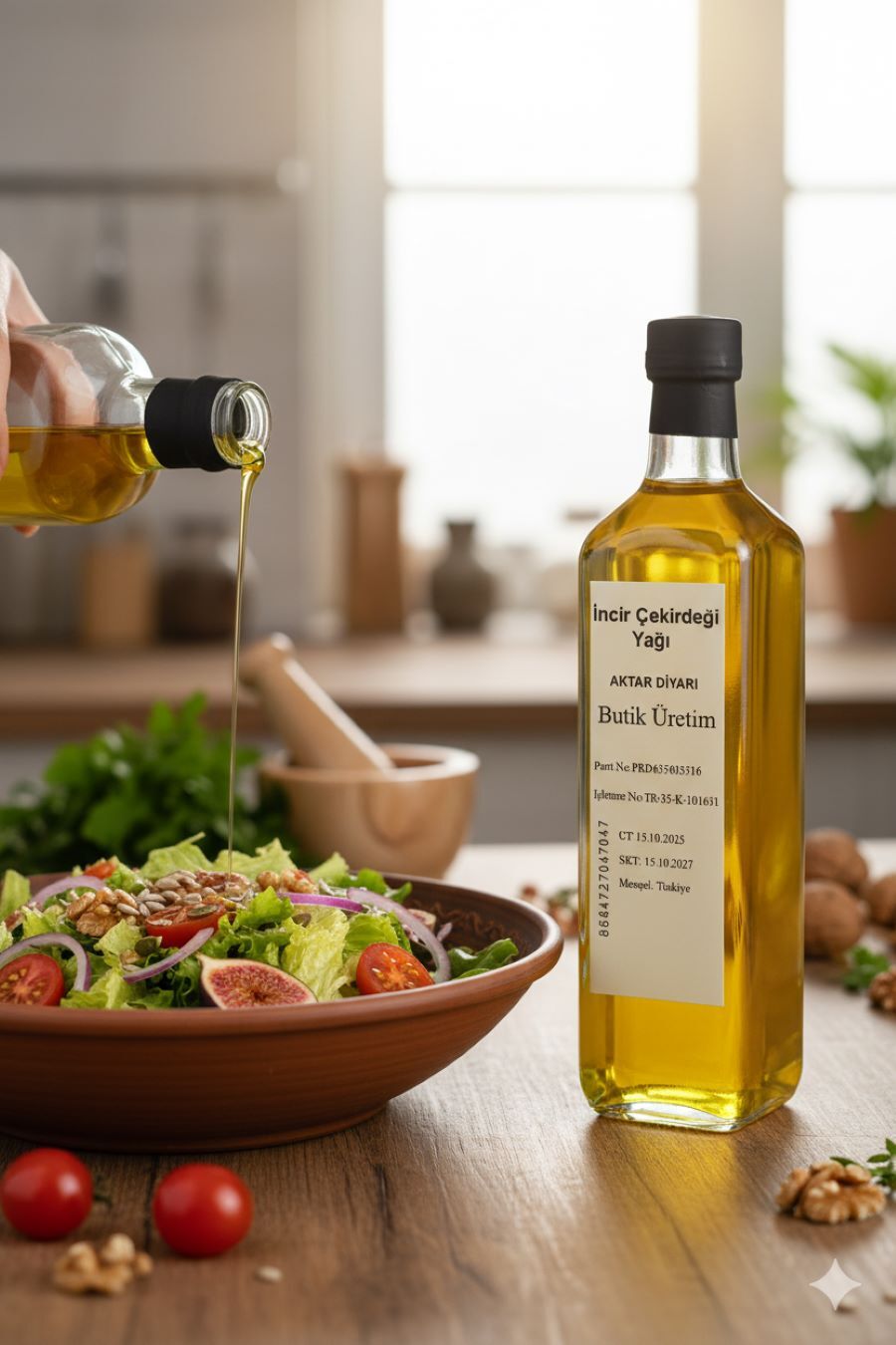 Aktar Diyarı'nın 1 litrelik İncir Çekirdeği Yağı ile sofralarınıza ve yaşamınıza doğallık katın. Bu özel bitkisel yağ, incirin eşsiz çekirdeklerinden özenle elde edilerek sizlere ulaşıyor. Aktar Diyarı olarak, doğanın sunduğu en saf halleriyle sizleri buluşturmak için titizlikle çalışıyoruz. İncir çekirdeği yağının kendine has aroması ve dokusuyla salatalarınıza farklı bir lezzet katabilir, çeşitli yemeklerinize zenginlik ekleyebilirsiniz. Ayrıca, cilt bakım rutinlerinizde de bu değerli bitkisel yağı kullanarak nemlendirici ve besleyici bir dokunuş sağlayabilirsiniz. Aktar Diyarı'nın güvenilirliği ve kalitesiyle sunulan bu 1 litrelik İncir Çekirdeği Yağı, mutfağınızın vazgeçilmezlerinden biri olmaya aday. Bitkisel yağlar kategorisindeki bu özel ürünümüzle, günlük yaşamınıza doğanın iyiliğini taşıyın. Aktar Diyarı güvencesiyle, her damlasında kaliteyi hissedin.