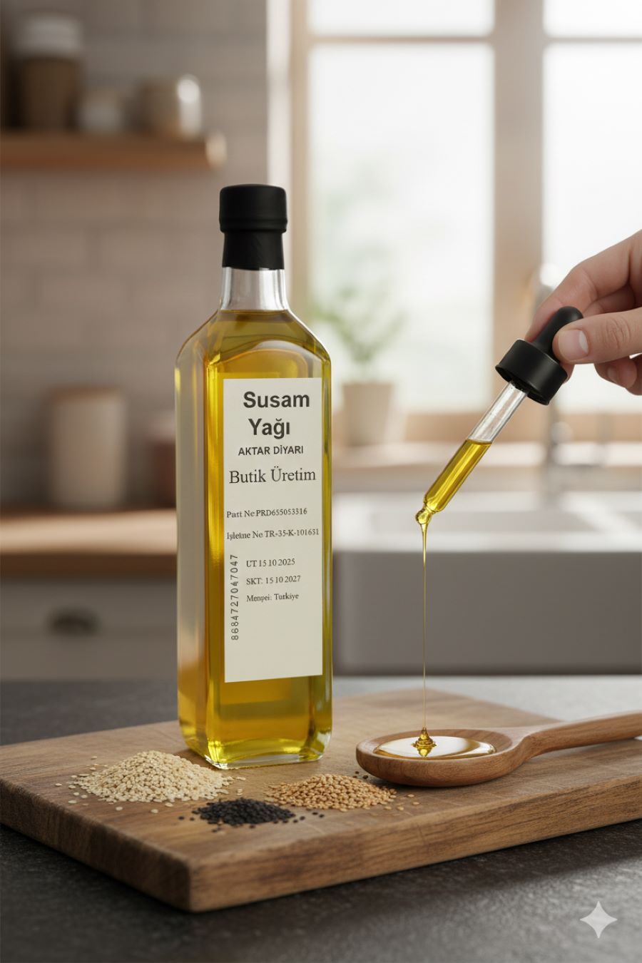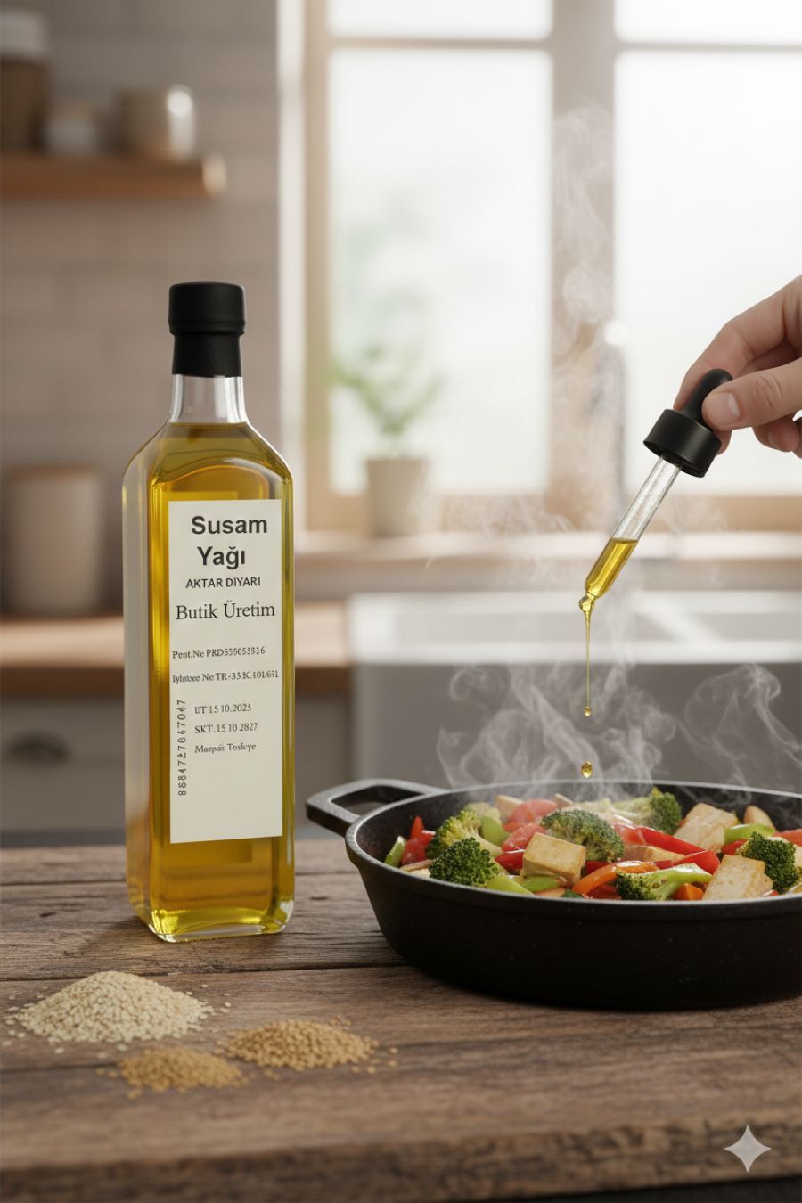 Aktar Diyarı'nın özenle hazırladığı Susam Yağı ile mutfaklarınıza ve kişisel bakım rutininize doğallık katın. Bitkisel yağlar kategorisinin değerli bir üyesi olan bu saf susam yağı, Aktar Diyarı'nın güvencesiyle sofralarınıza geliyor. Yüksek kaliteli susam tohumlarından soğuk pres yöntemiyle elde edilen Aktar Diyarı susam yağı, eşsiz aroması ve besleyici özellikleriyle öne çıkıyor. Yemeklerinize lezzet katmak için kullanabileceğiniz gibi, cilt ve saç bakımı için de ideal bir alternatiftir. Ciltteki kuruluğu gidermeye yardımcı olurken, saçların daha canlı ve parlak görünmesine katkı sağlayabilir. Doğal içeriklere önem verenler için Aktar Diyarı susam yağı, güvenilir bir seçimdir. Bu bitkisel yağ, hem lezzetli hem de faydalı yönleriyle mutfakta vazgeçilmez bir yardımcıdır. Aktar Diyarı kalitesiyle sunulan bu susam yağı, doğanın sunduğu güzellikleri evinize taşır.
