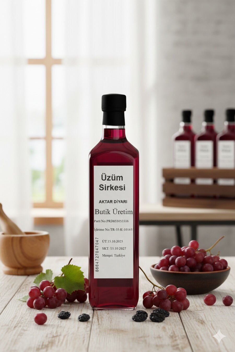 Aktar Diyarı Kalitesiyle Üzüm Sirkesi: Doğallık Sofranızda! Doğal fermantasyon yöntemiyle özenle üretilen Aktar Diyarı Üzüm Sirkesi, mutfağınıza lezzet ve sağlık katmak için hazır. Taze üzümlerden elde edilen bu özel sirkemiz, salatalarınızın vazgeçilmez bir parçası olacak. Tatlılığı ve hafif ekşiliği dengeli yapısıyla damaklarda hoş bir tat bırakan Aktar Diyarı Üzüm Sirkesi, aynı zamanda doğal bir lezzet artırıcıdır. Kaliteli hammaddesi ve kontrollü üretim süreci ile sofralarınıza güvenle taşıyabileceğiniz Aktar Diyarı Üzüm Sirkesi, Aktar Diyarı'nın "Muhtelif Gıda" kategorisindeki doğal ürünlerinden biridir. Yemeklerinize derinlik katmak, soslarınızı zenginleştirmek veya turşularınıza ferahlık vermek için ideal bir seçim. Her damlasında Aktar Diyarı güvencesi ve doğallığı. Mutfağınızın vazgeçilmez lezzeti Aktar Diyarı Üzüm Sirkesi ile tanışın, farkı hissedin.